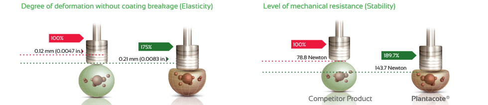 Another advantage of the Plantacote® coating is its exceptionally high degree of elasticity. This enables the coated granule to adapt perfectly to changes in the inner fluid pressure caused by frost conditions and extreme heat. Therefore, Plantacote® continues to release in a controlled manner even under the most adverse conditions.